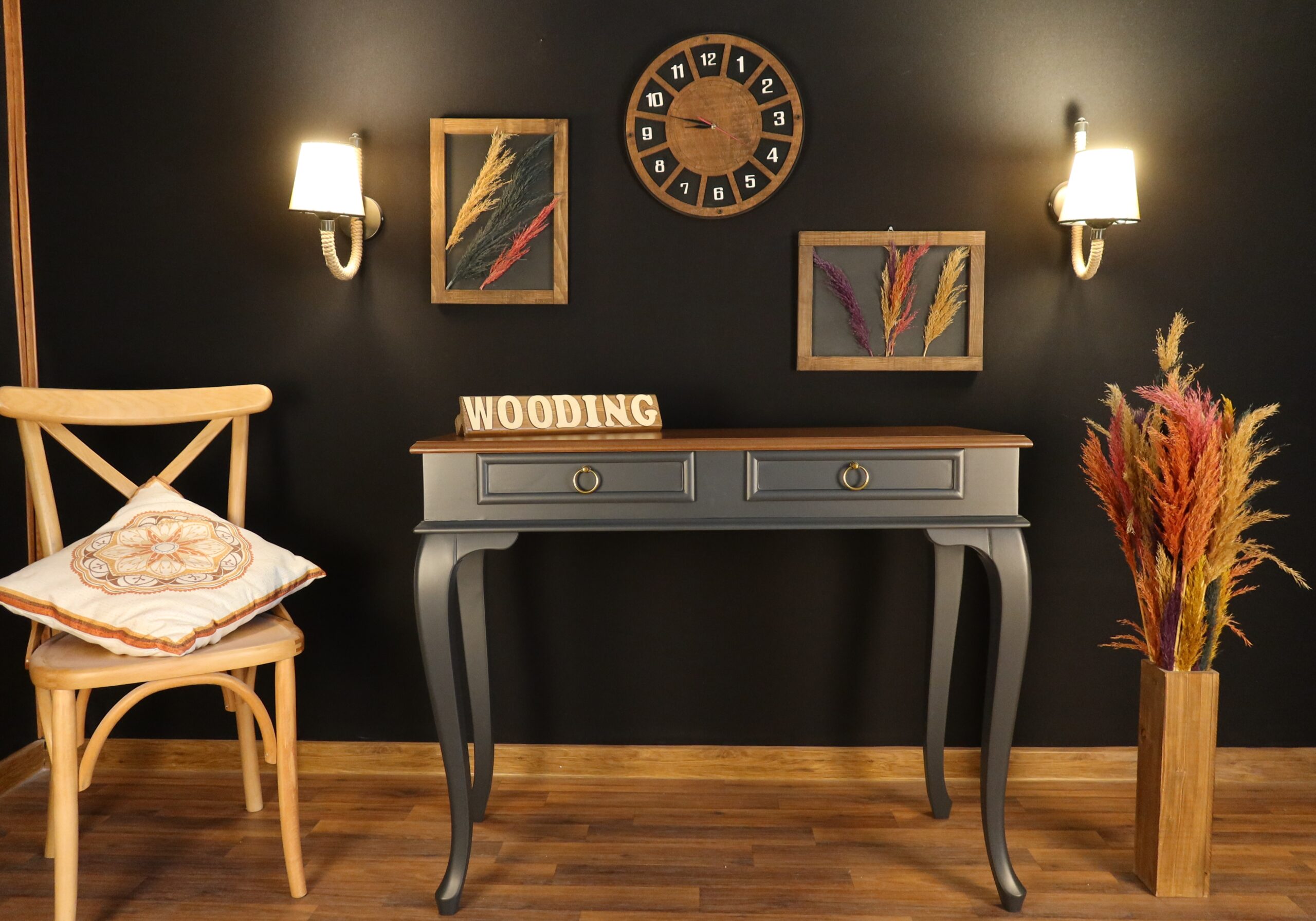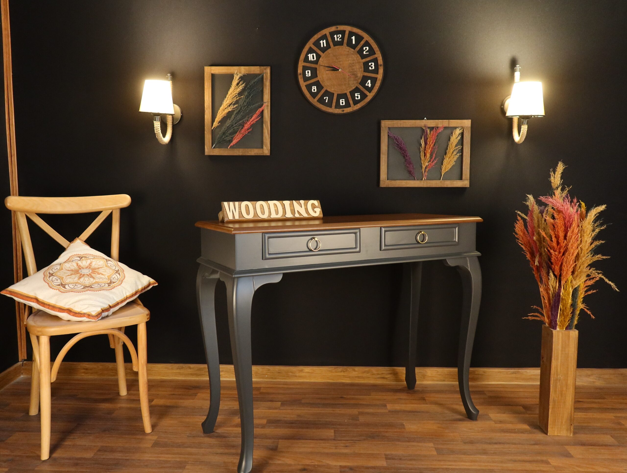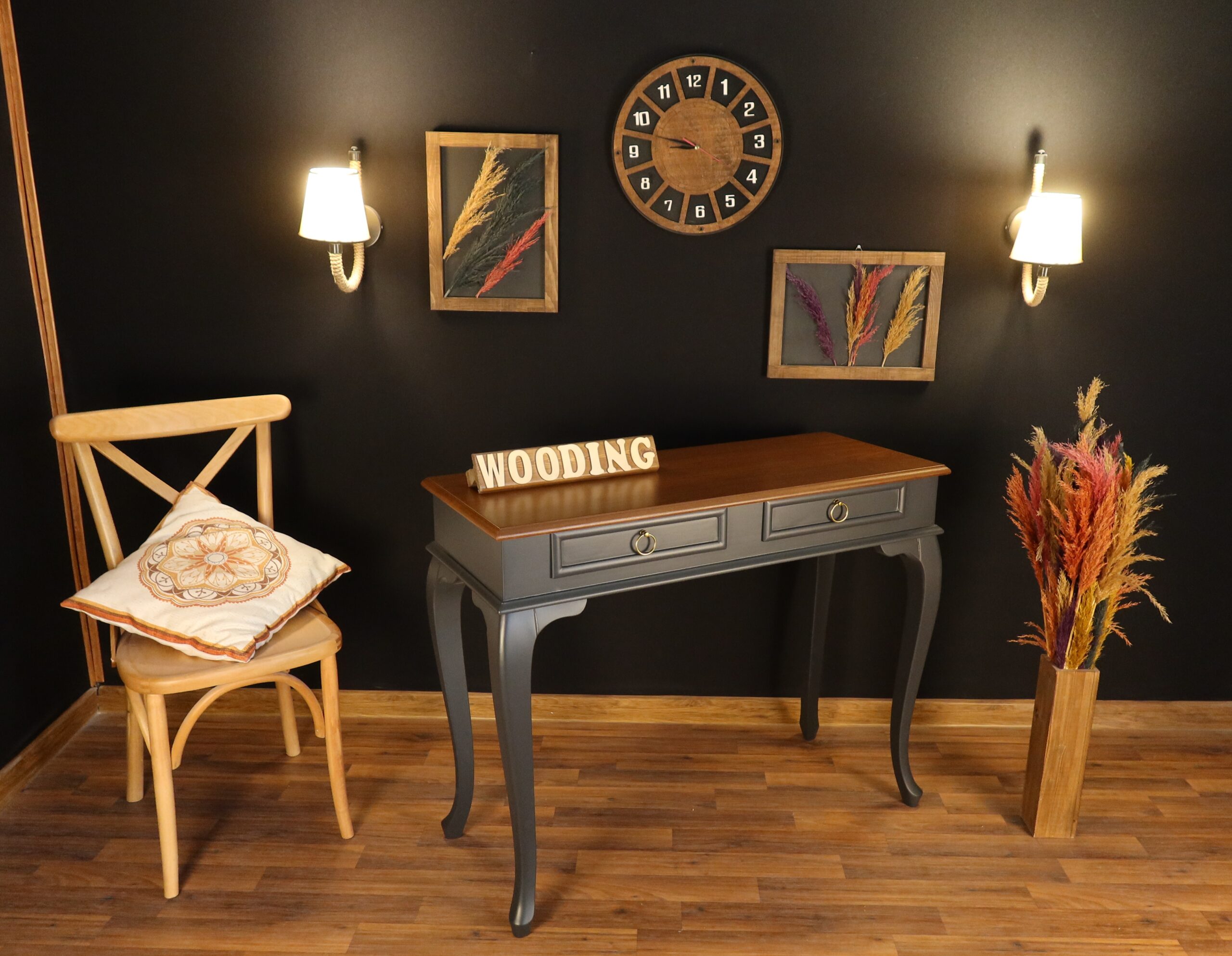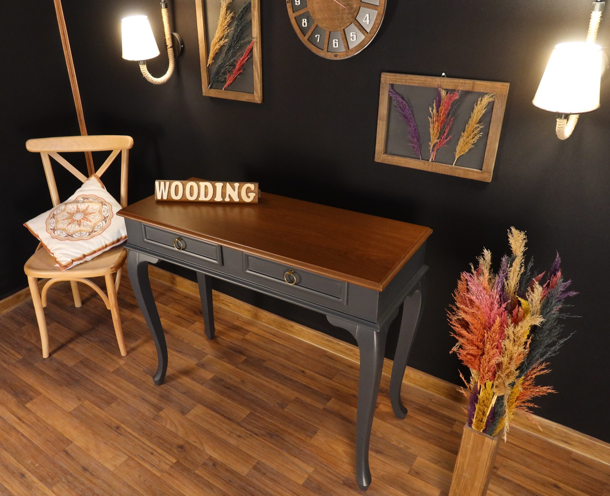 Wooding 110 Cm Çekmeceli Masif Antrasit Ceviz Dresuar