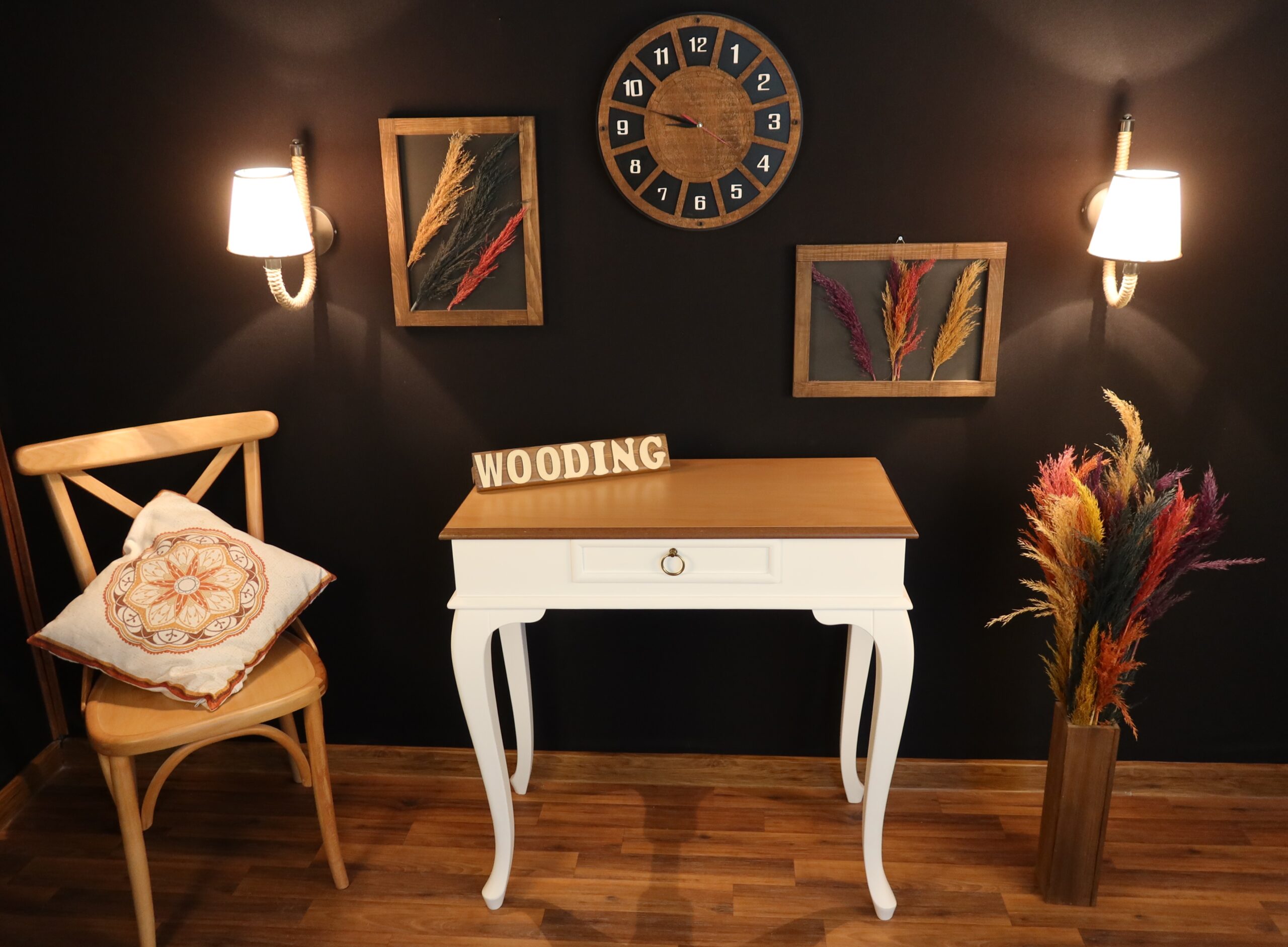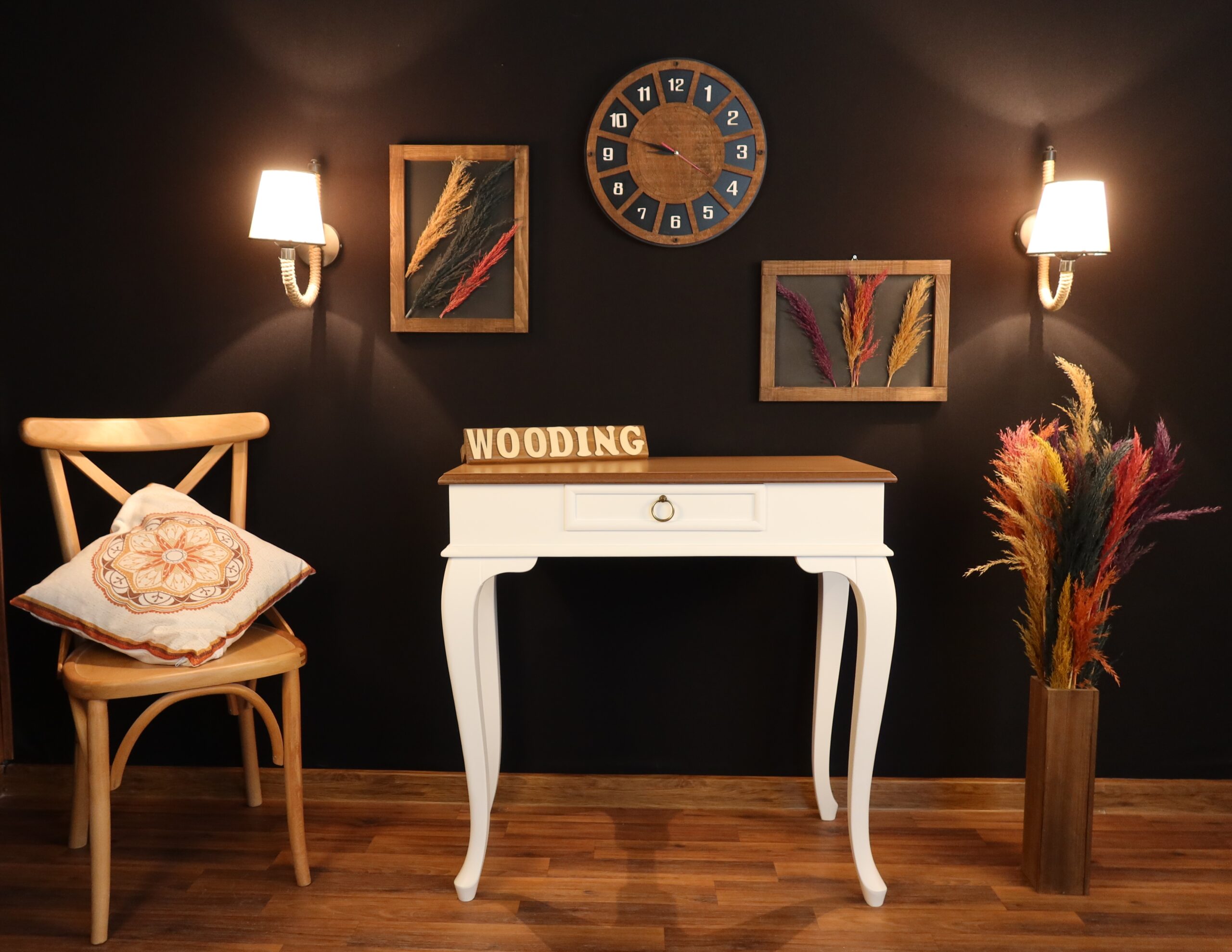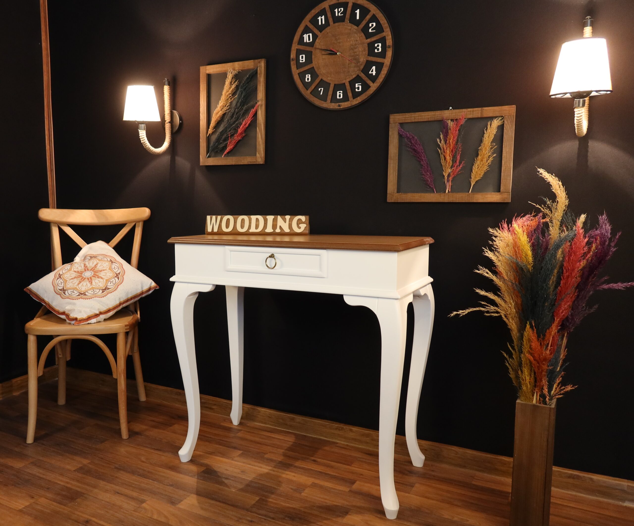 Malzeme: Ayaklar Tamamen Ağaçtır. Üst Tabla Mdf Üzeri Masif Kaplamadır.