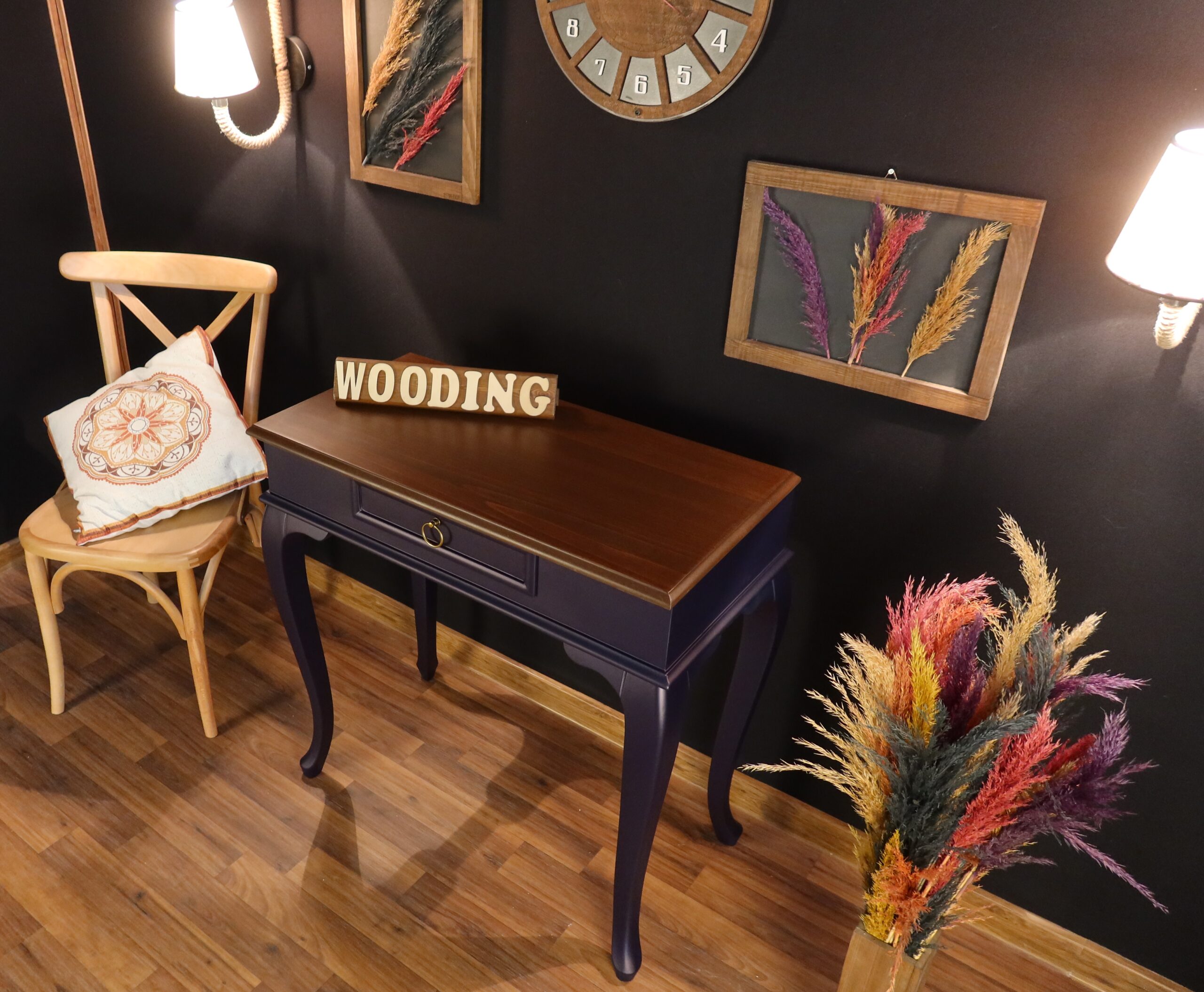Wooding 90 Cm Çekmeceli Masif Lacivert Ceviz Dresuar