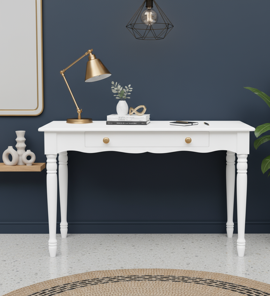 Wooding Mobilya 100 Cm Masif Beyaz Tornalı Çalışma Masası