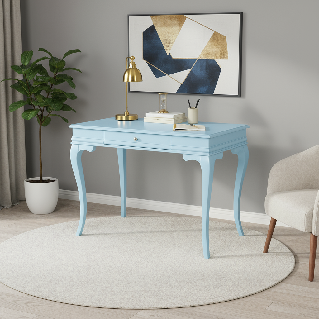 Wooding Mobilya 100 Cm Masif Rustik Mavi Çalışma Masası