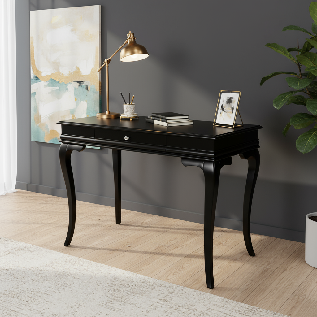 Wooding Mobilya 100 Cm Masif Rustik Siyah Çalışma Masası