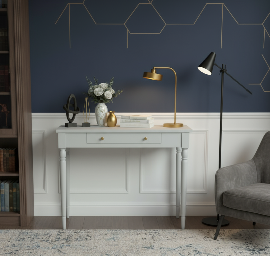 Wooding Mobilya 100 Cm Masif Tornalı Açık Gri Çalışma Masası