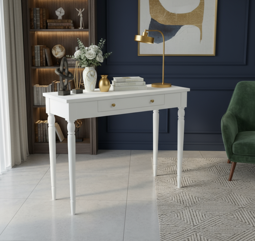 Wooding Mobilya 100 Cm Masif Tornalı Beyaz Çalışma Masası