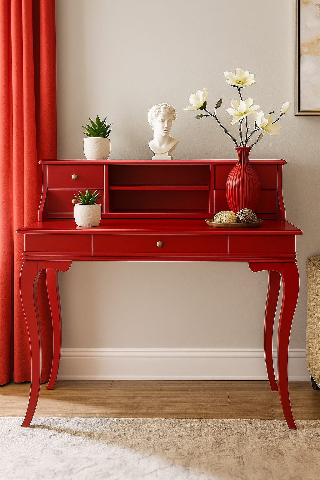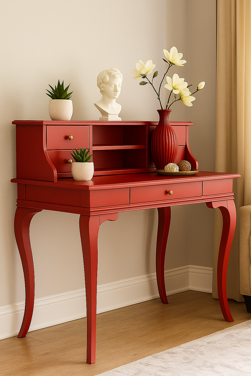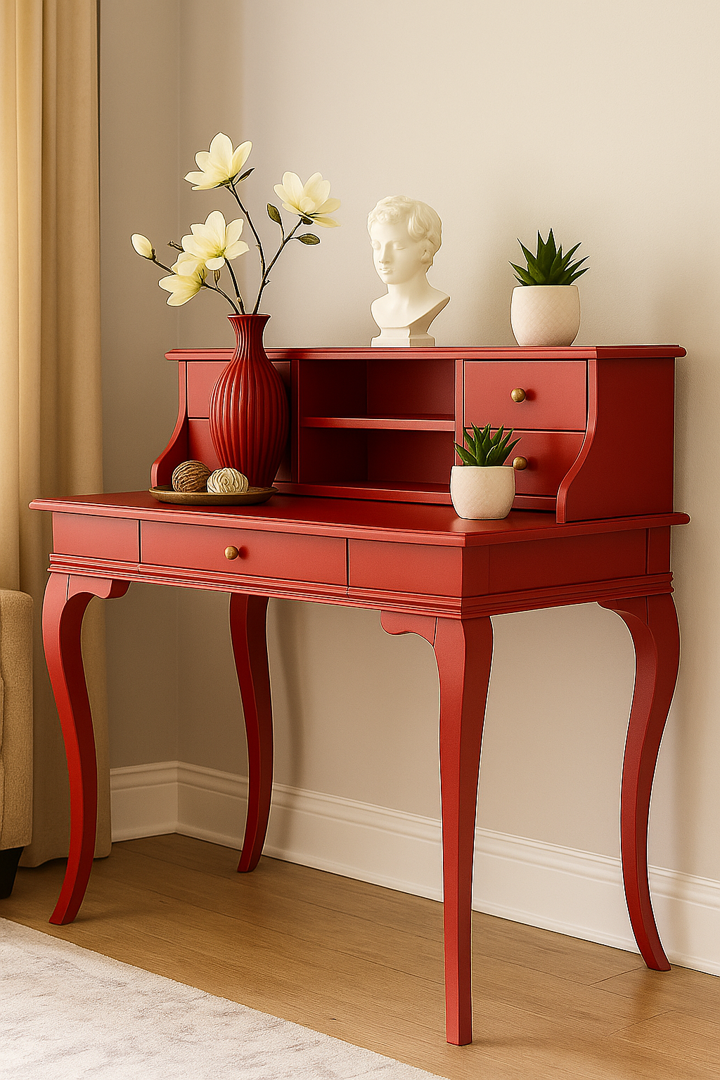 Wooding Mobilya 110 Cm 5 Çekmeceli Masif Kırmızı Raflı Çalışma Masası