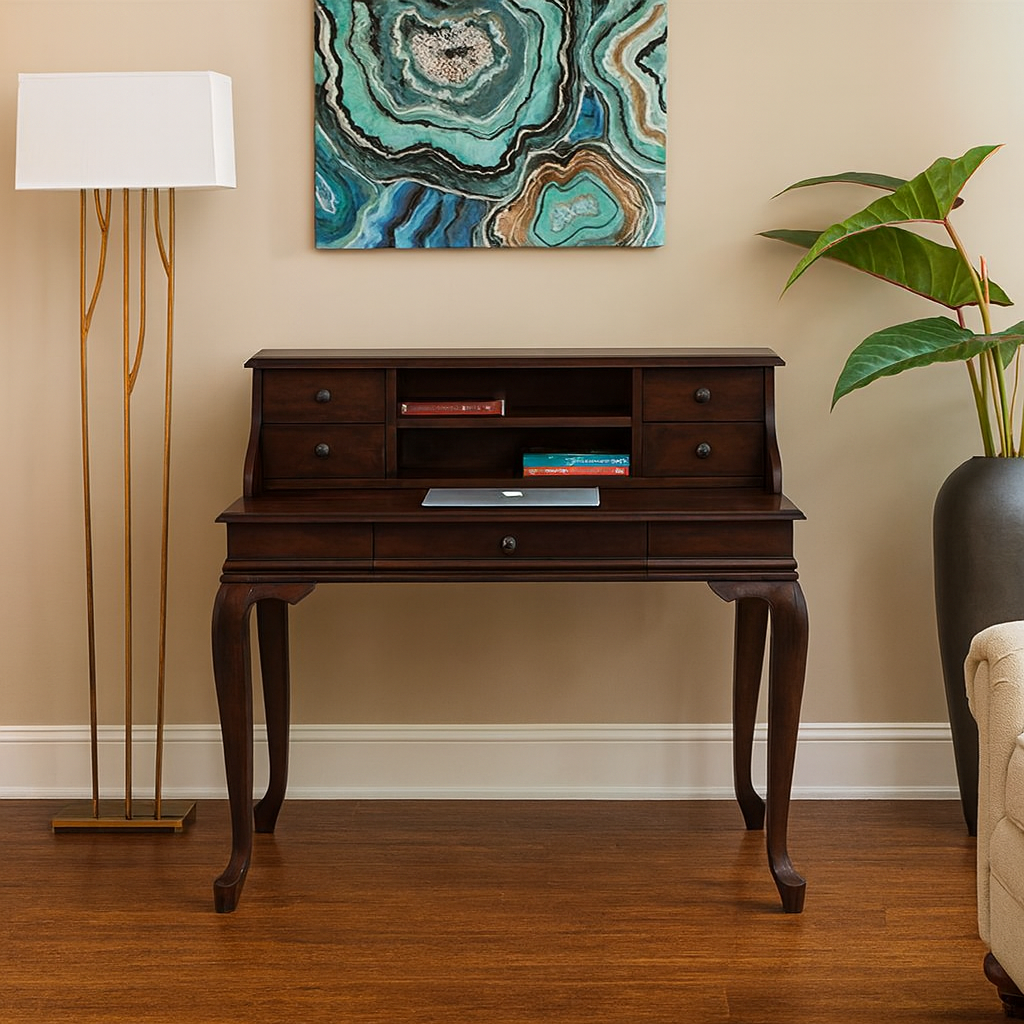 Wooding Mobilya 110 Cm 5 Çekmeceli Masif Koyu Ceviz Raflı Çalışma Masası