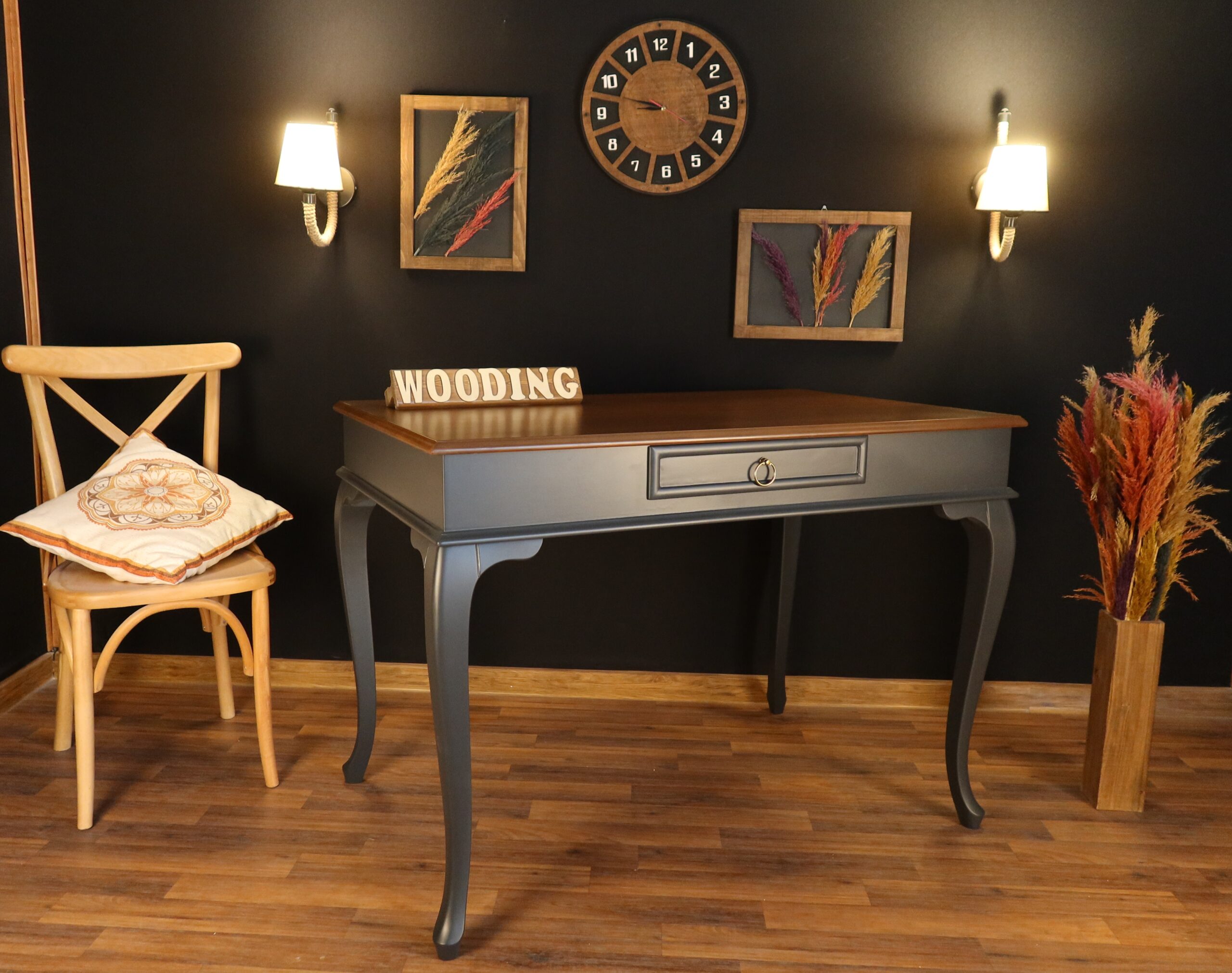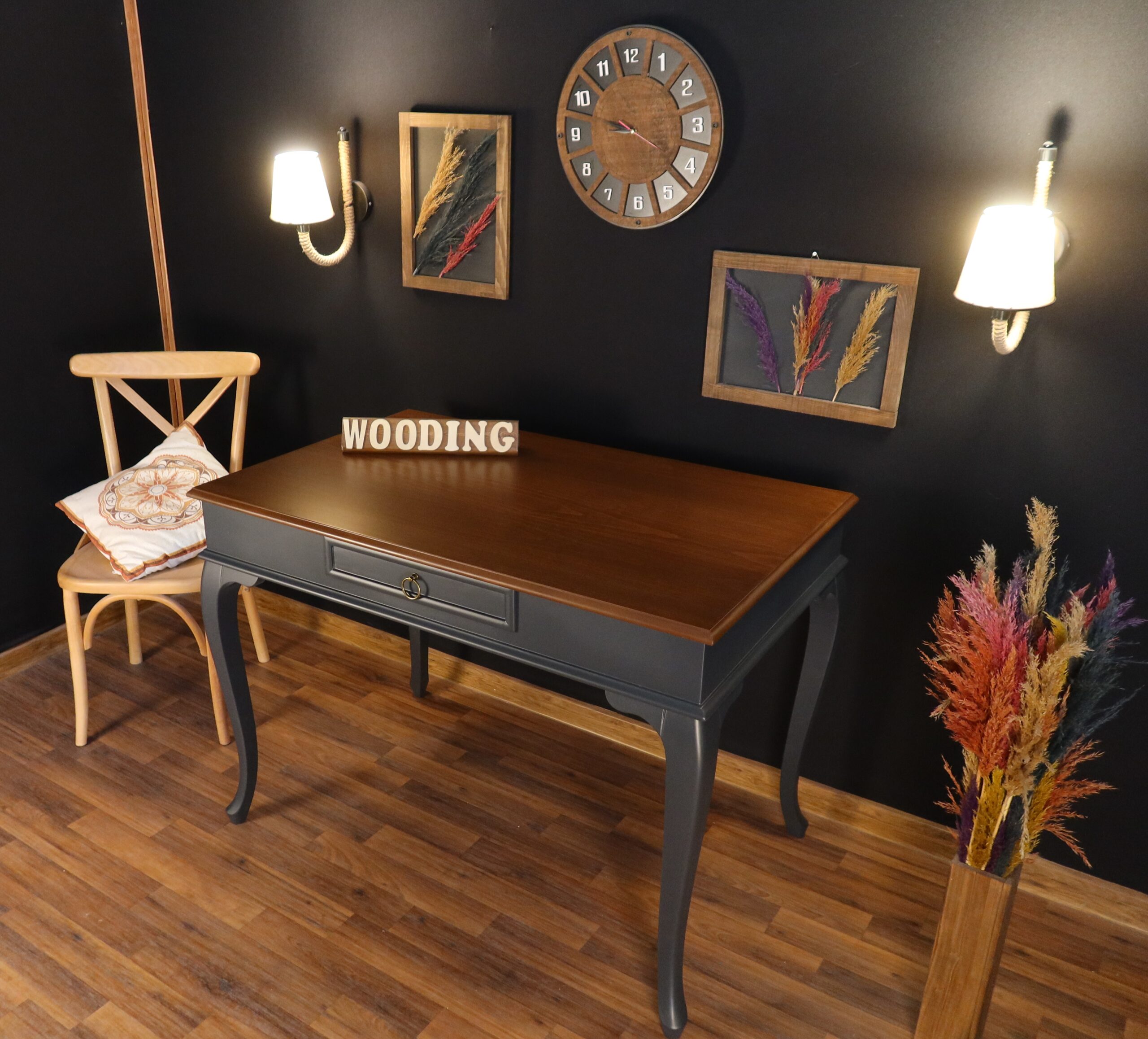 Wooding Mobilya 110 Cm Çekmeceli Masif Antrasit Ceviz Çalışma Masası