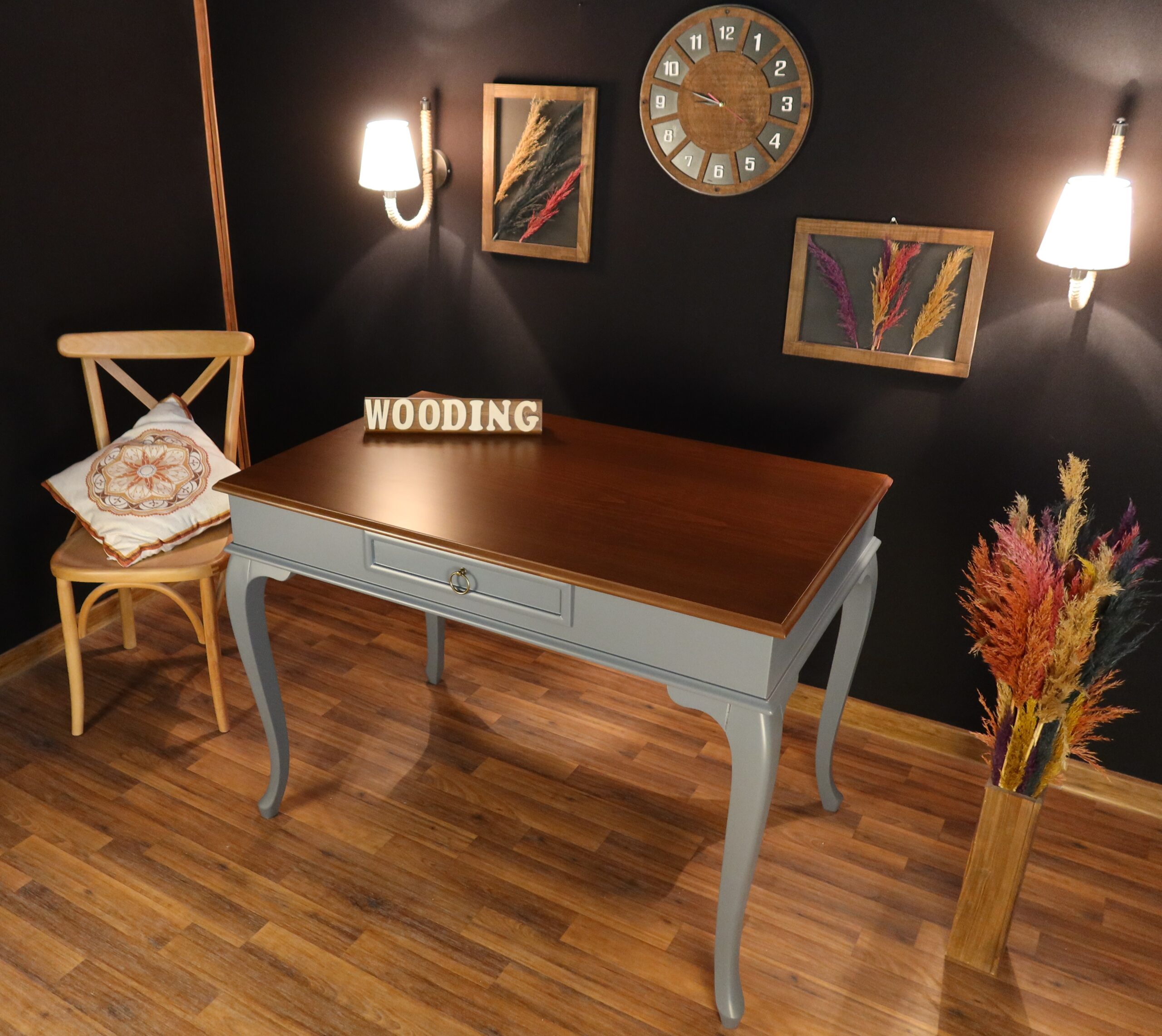 Wooding Mobilya 110 Cm Çekmeceli Masif Gri Ceviz Çalışma Masası
