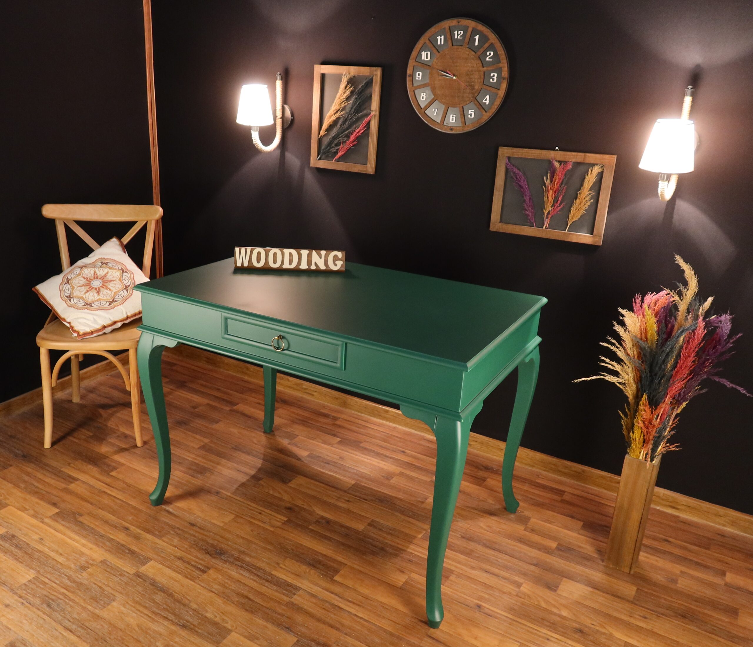 Wooding Mobilya 110 Cm Çekmeceli Masif Yeşil Çalışma Masası