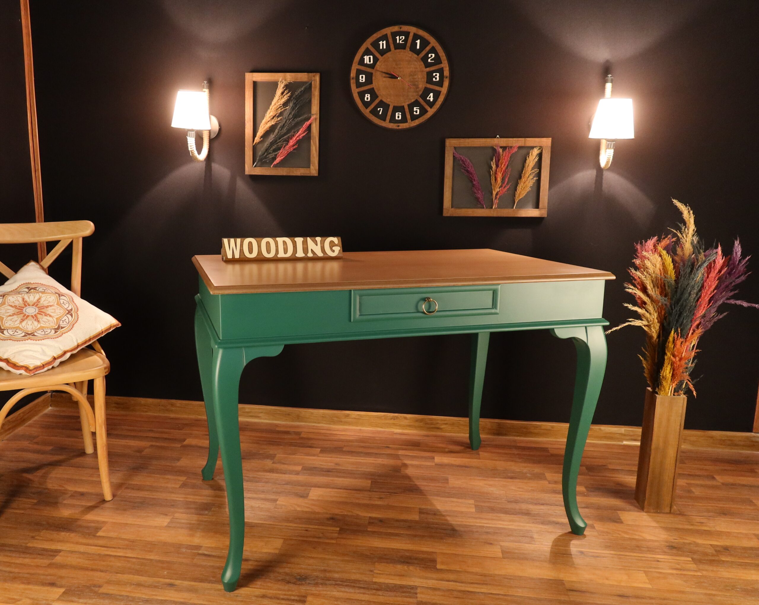 Wooding Mobilya 110 Cm Çekmeceli Masif Yeşil Naturel Çalışma Masası
