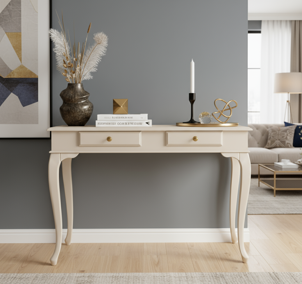 Wooding Mobilya 110 Cm Masif Lükens Krem Çalışma Masası