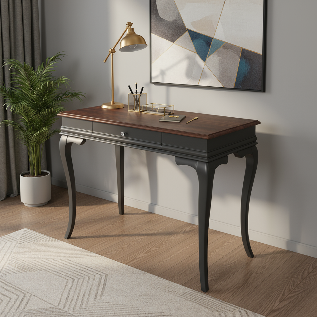 Wooding Mobilya 110 Cm Masif Rustik Antrasit Ceviz Çalışma Masası