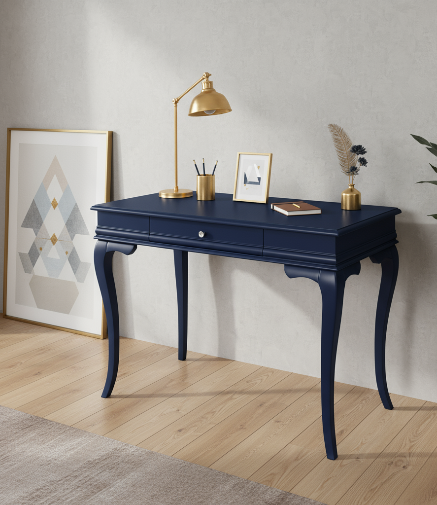 Wooding Mobilya 110 Cm Masif Rustik Lacivert Çalışma Masası