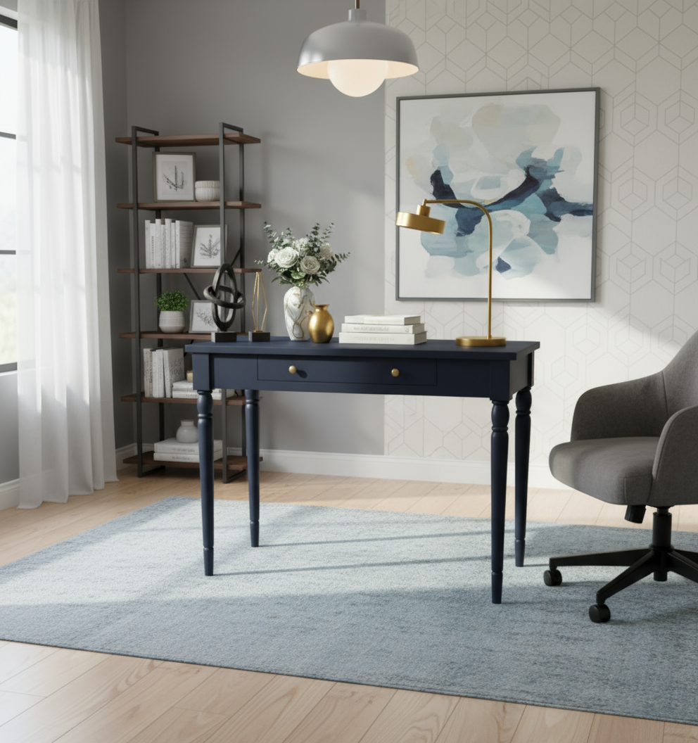 Wooding Mobilya 110 Cm Masif Tornalı Lacivert Çalışma Masası