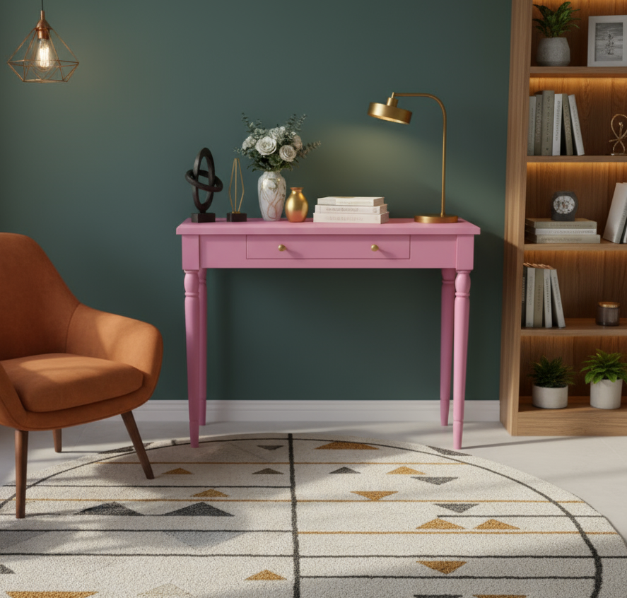 Wooding Mobilya 110 Cm Masif Tornalı Pembe Çalışma Masası