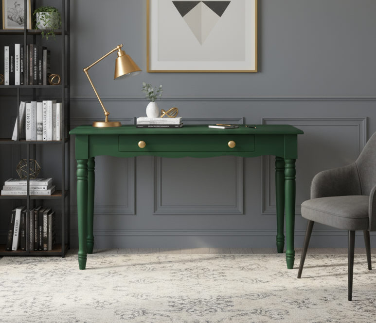 Wooding Mobilya 110 Cm Masif Yeşil Tornalı Çalışma Masası