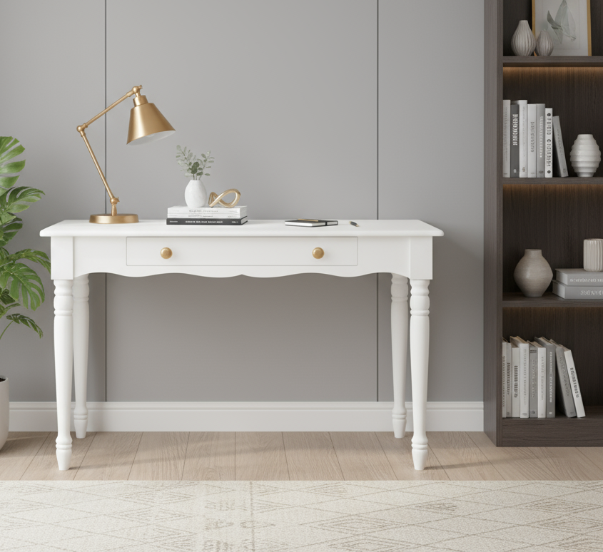 Wooding Mobilya 120 Cm Masif Beyaz Tornalı Çalışma Masası