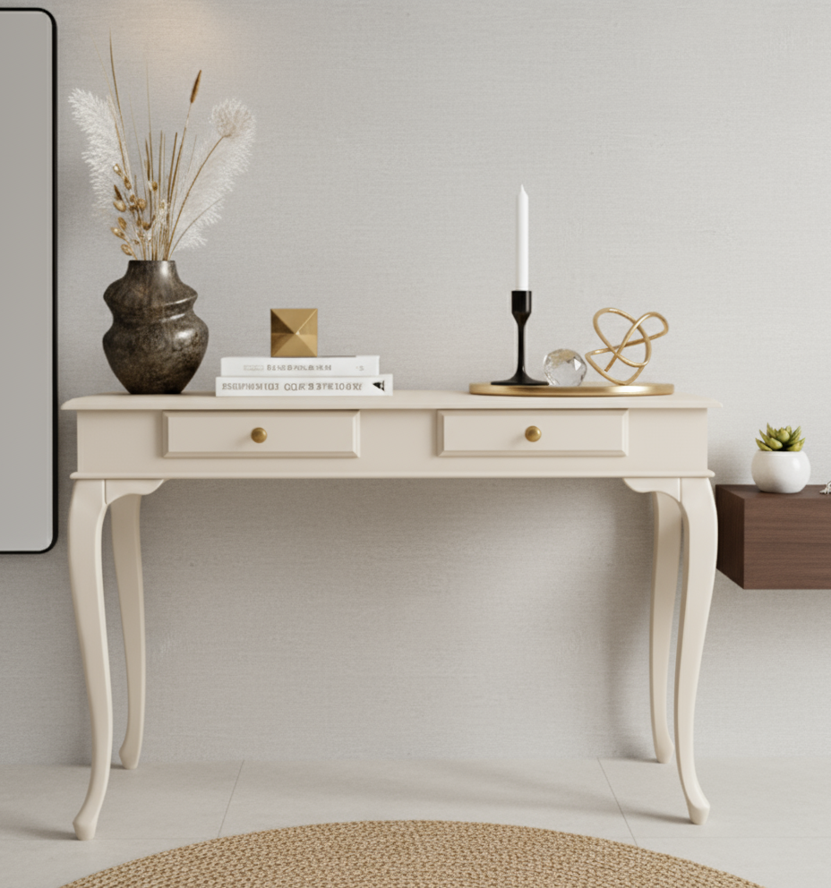 Wooding Mobilya 120 Cm Masif Lükens Krem Çalışma Masası