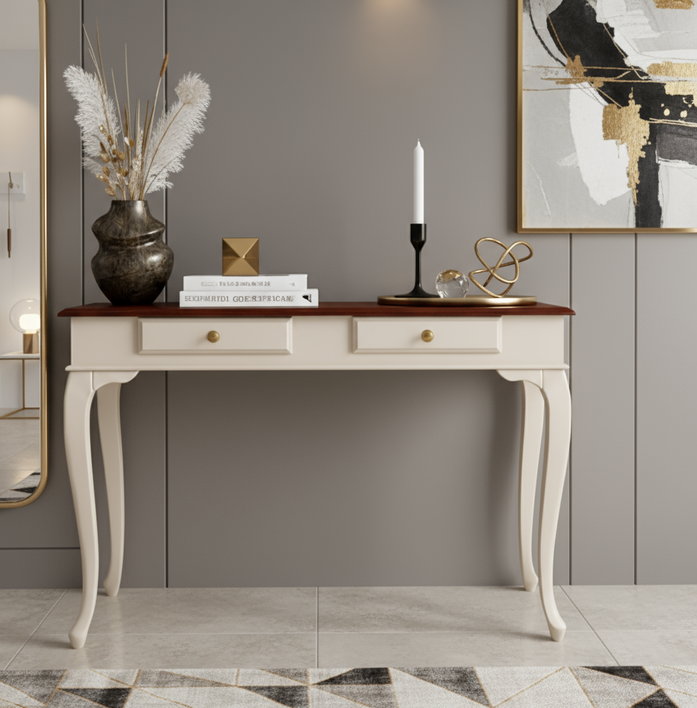 Wooding Mobilya 120 Cm Masif Lükens Krem Ceviz Çalışma Masası