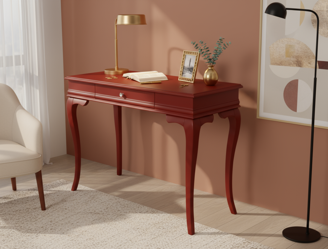 Wooding Mobilya 120 Cm Masif Rustik Bordo Çalışma Masası