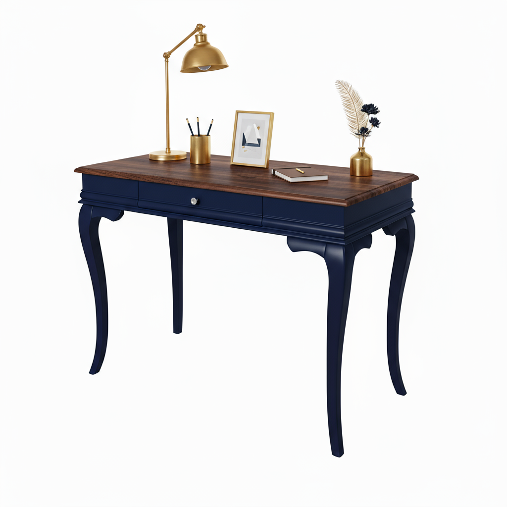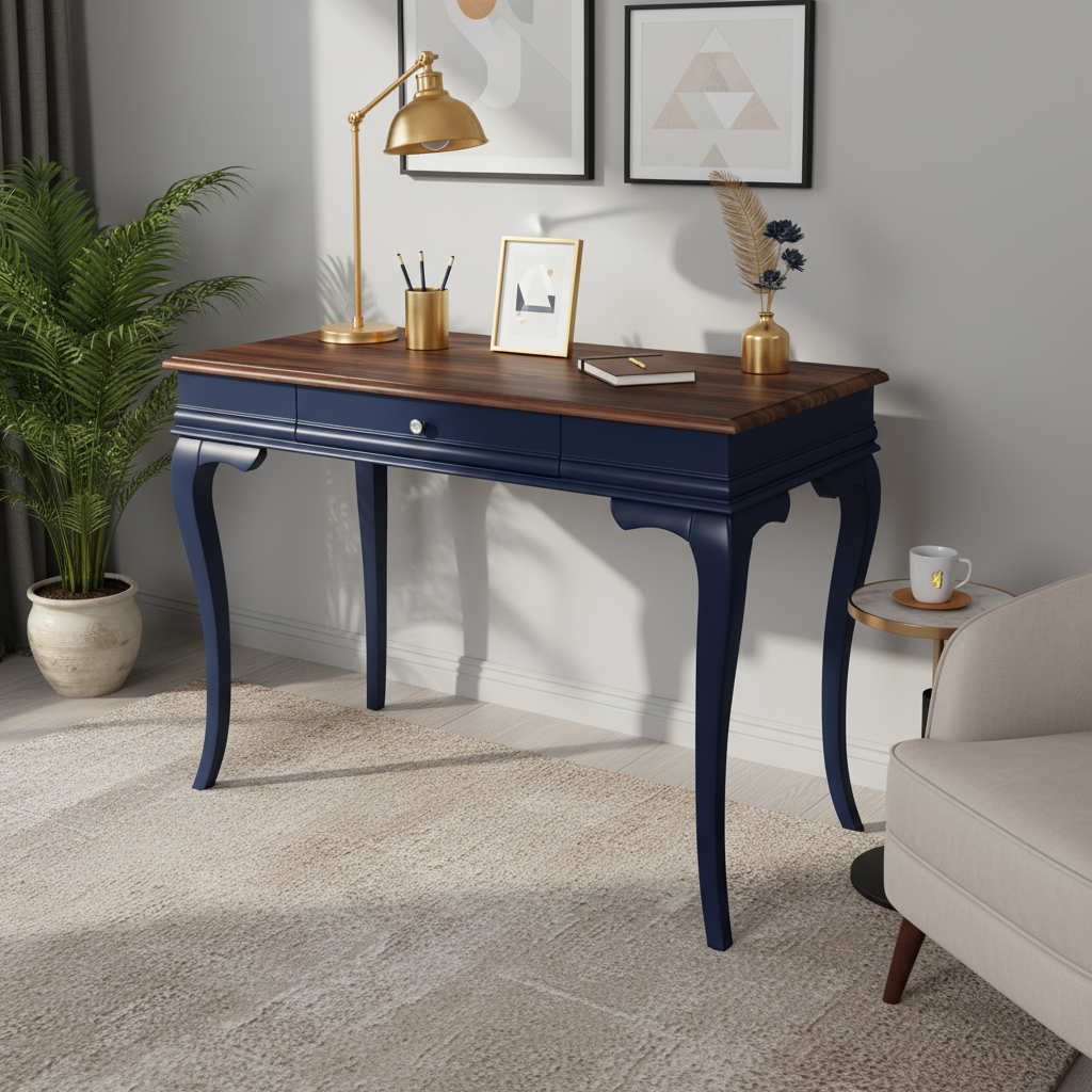 Wooding Mobilya 120 Cm Masif Rustik Lacivert Ceviz Çalışma Masası