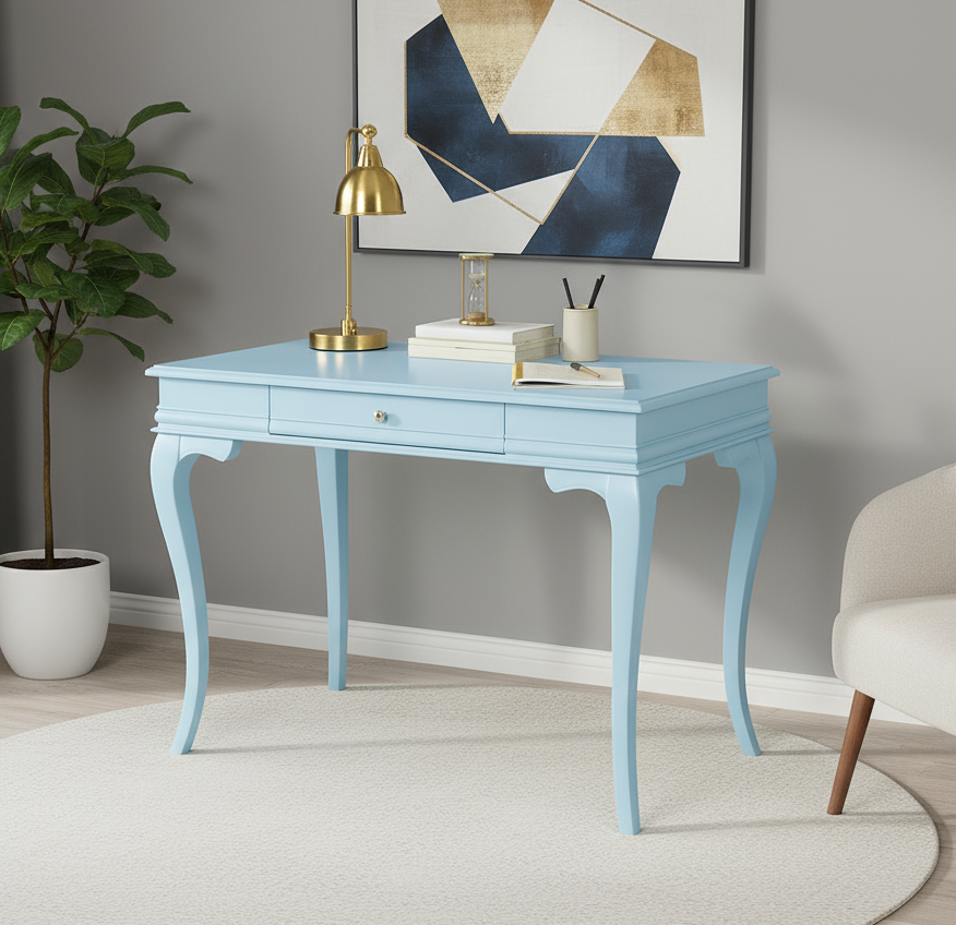 Wooding Mobilya 120 Cm Masif Rustik Mavi Çalışma Masası