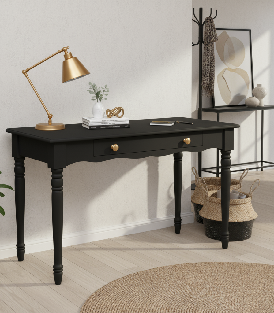 Wooding Mobilya 120 Cm Masif Siyah Tornalı Çalışma Masası