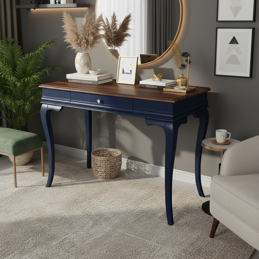 Wooding Mobilya 80 Cm Masif Rustik Lacivert Ceviz Dresuar
