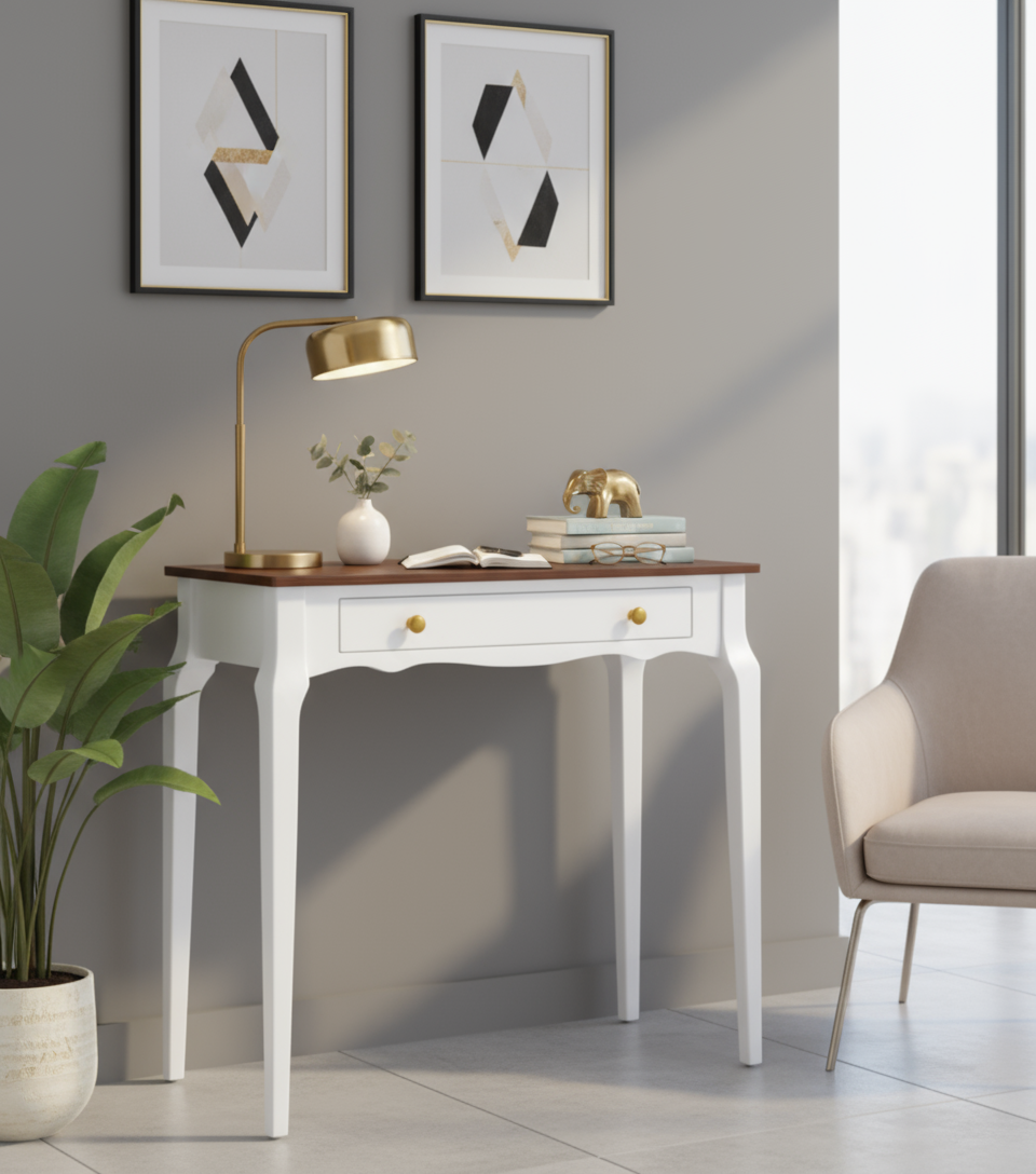 Wooding Mobilya 85 Cm Masif Konik Beyaz Ceviz Dresuar