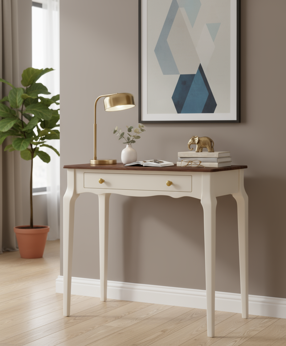 Wooding Mobilya 85 Cm Masif Konik Krem Ceviz Dresuar