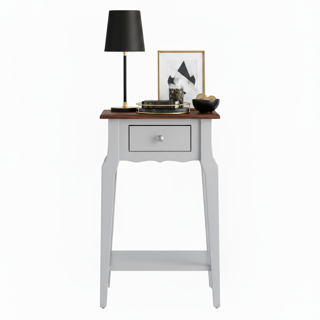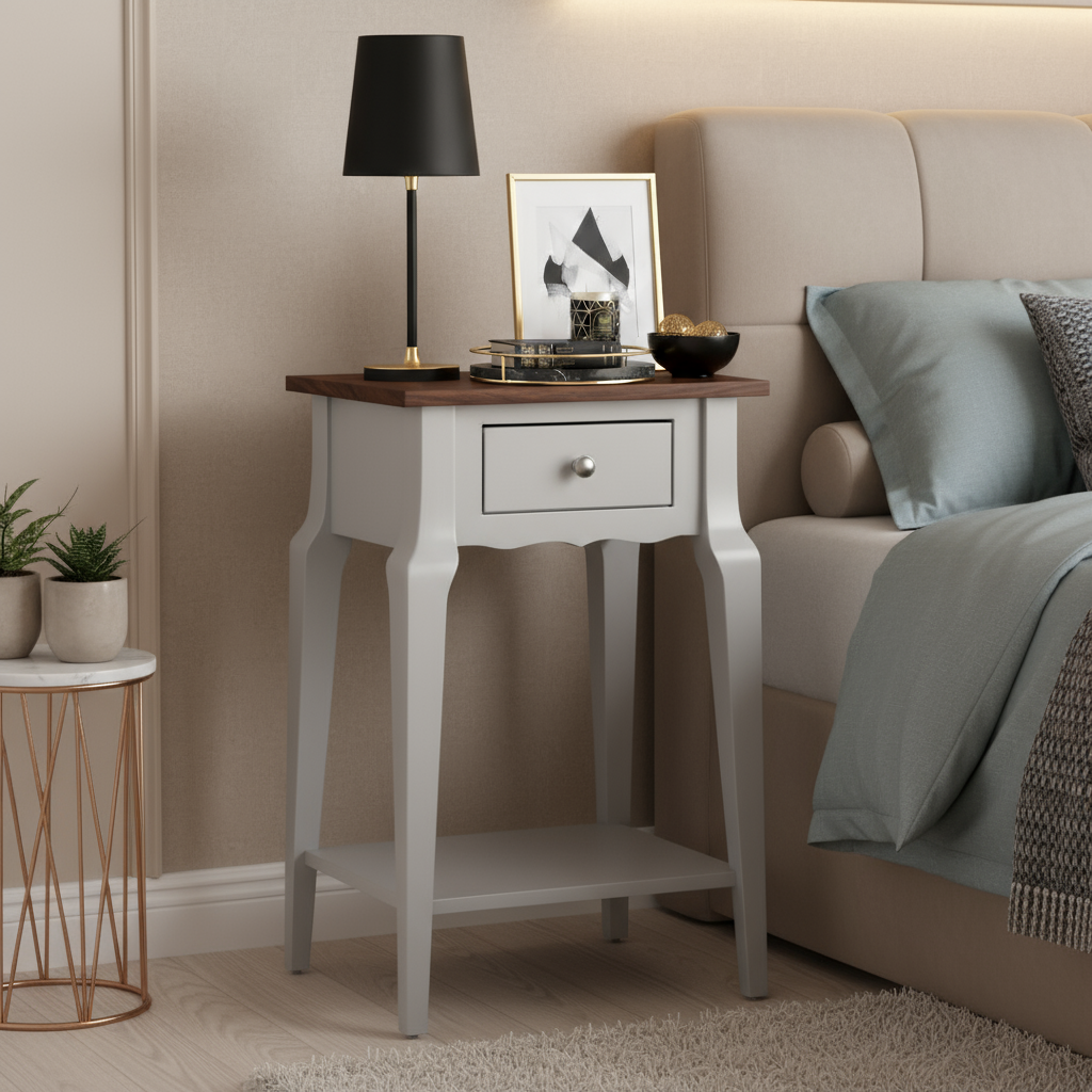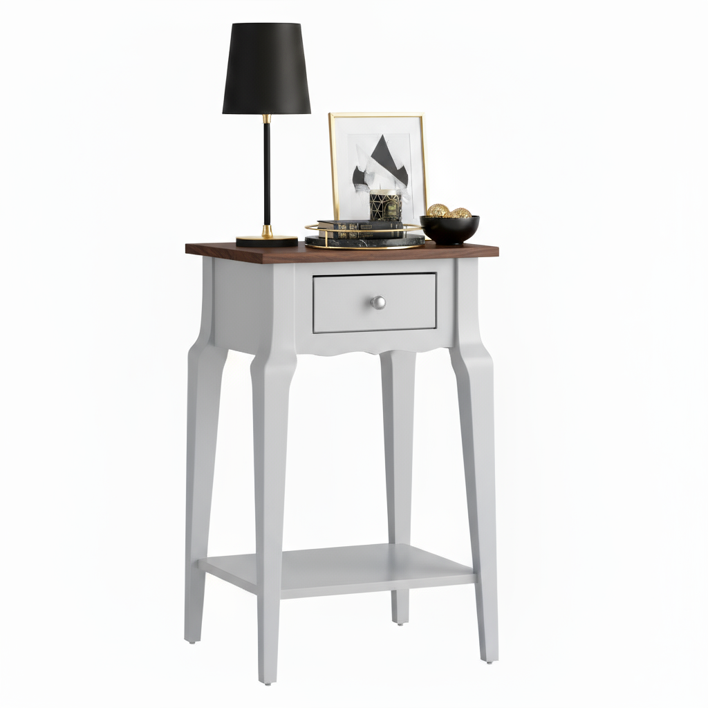 Wooding Mobilya Masif Konik Açık Gri Ceviz Raflı Komodin