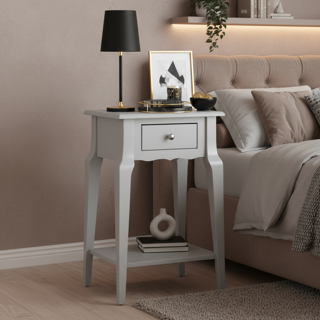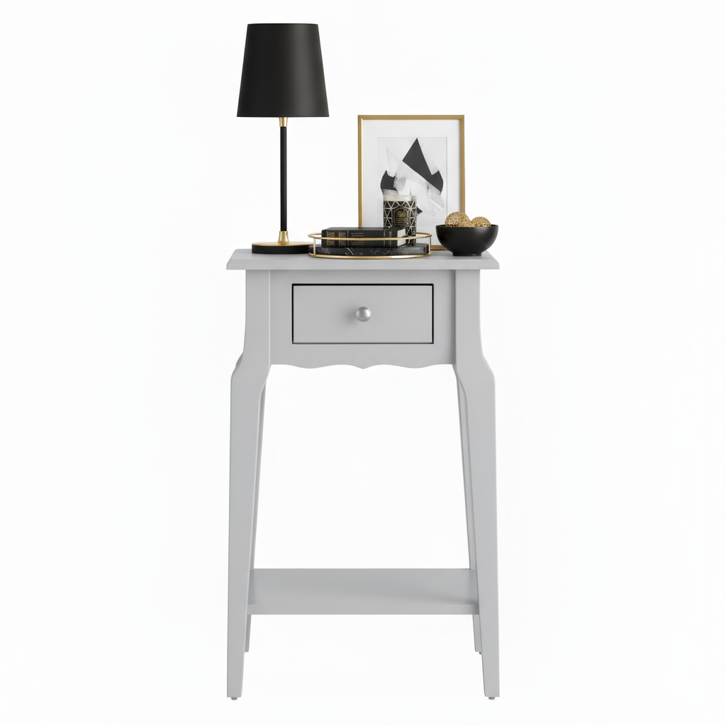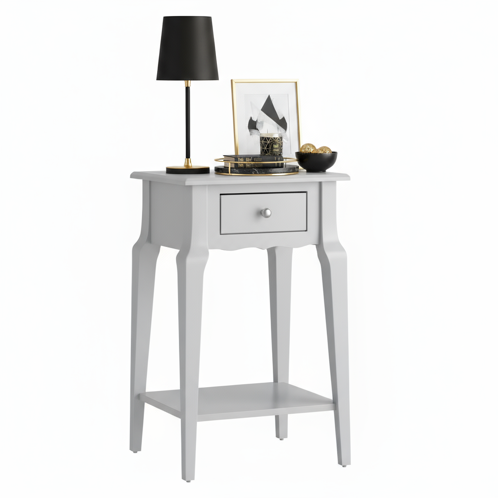 Wooding Mobilya Masif Konik Açık Gri Raflı Komodin