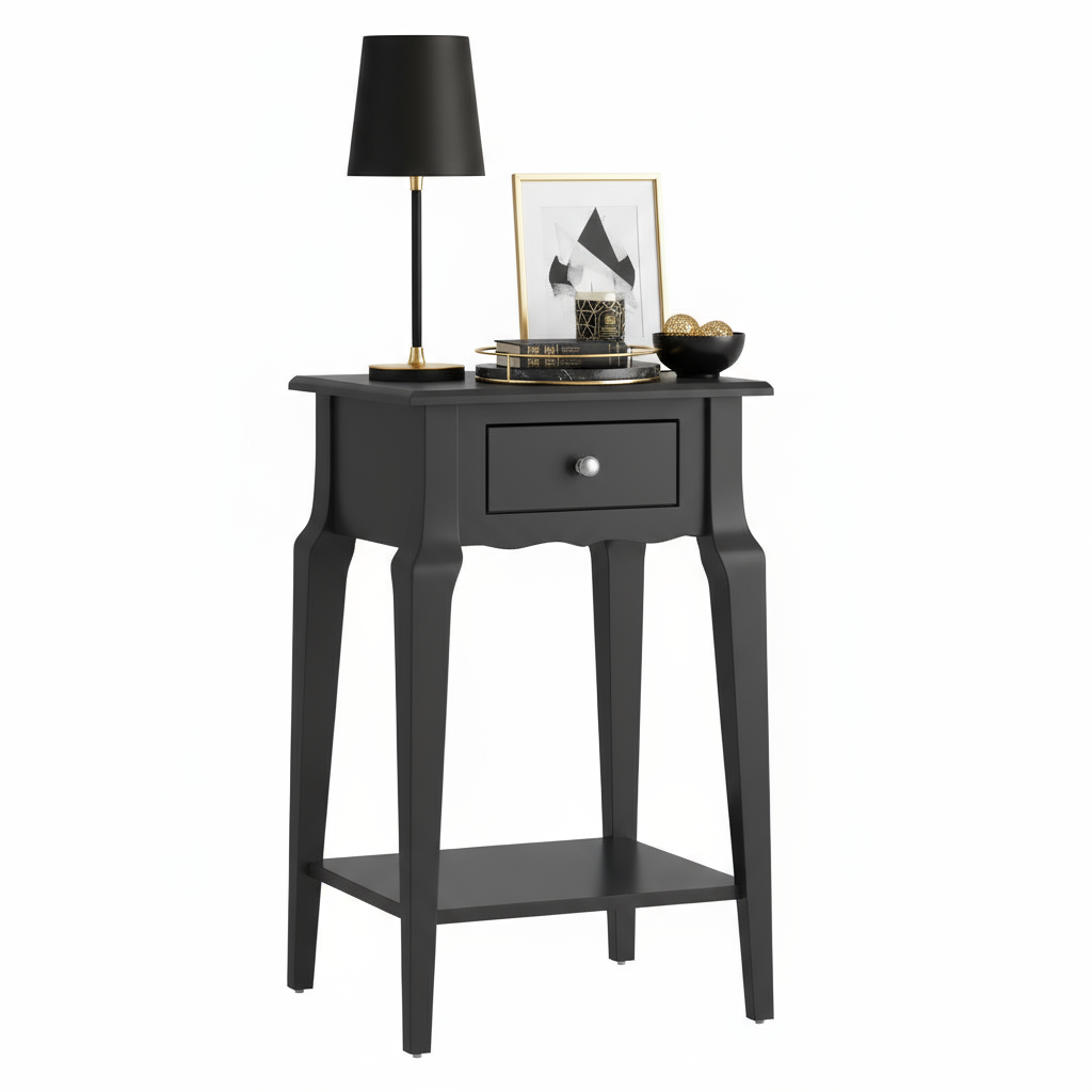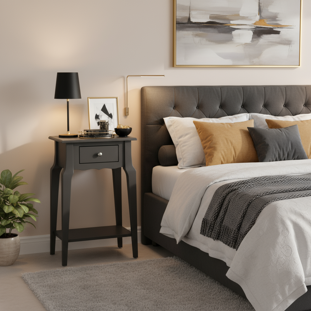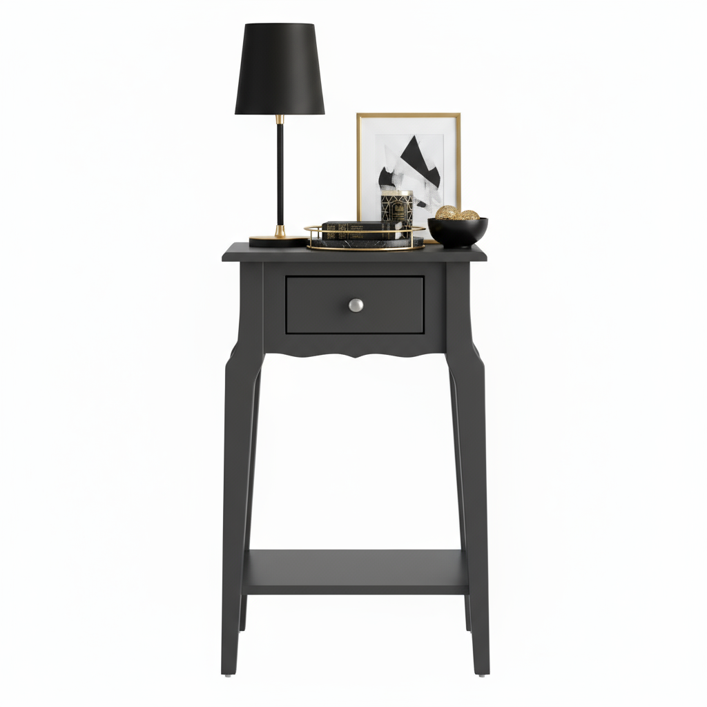 Wooding Mobilya Masif Konik Antrasit Raflı Komodin