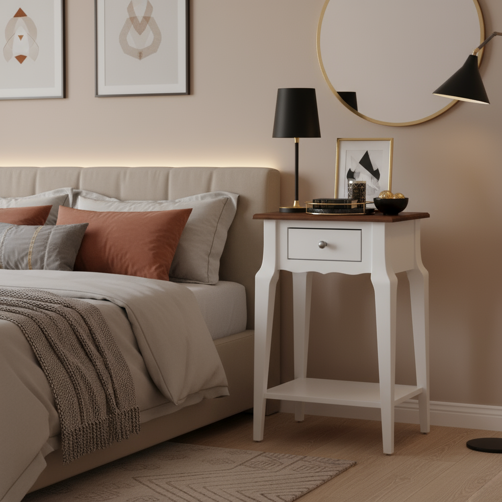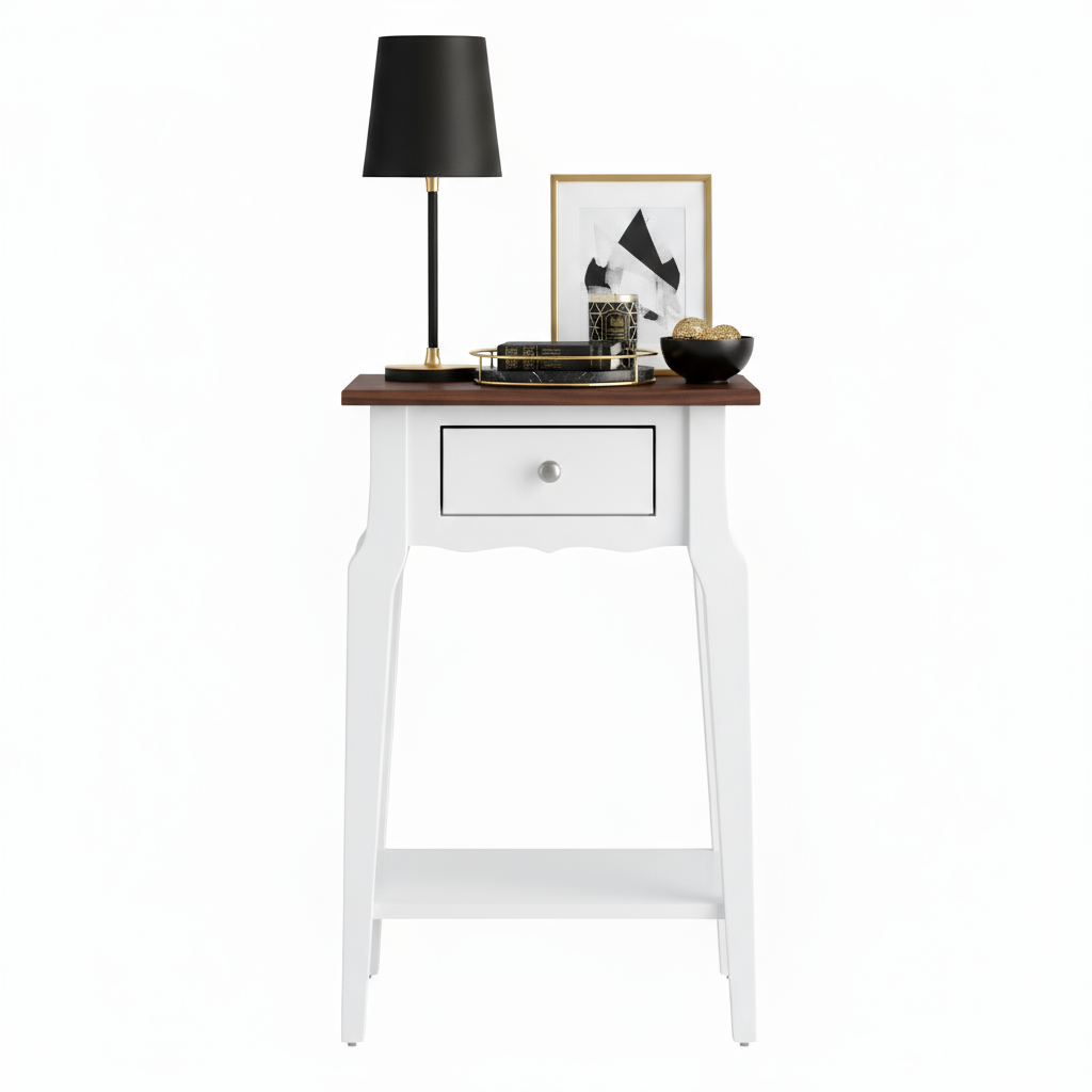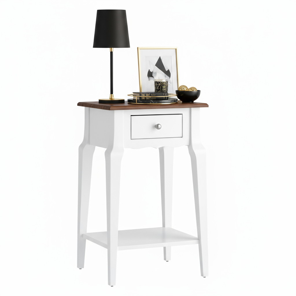 Wooding Mobilya Masif Konik Beyaz Ceviz Raflı Komodin