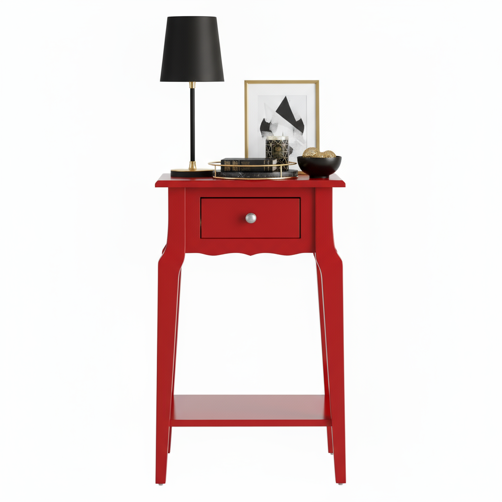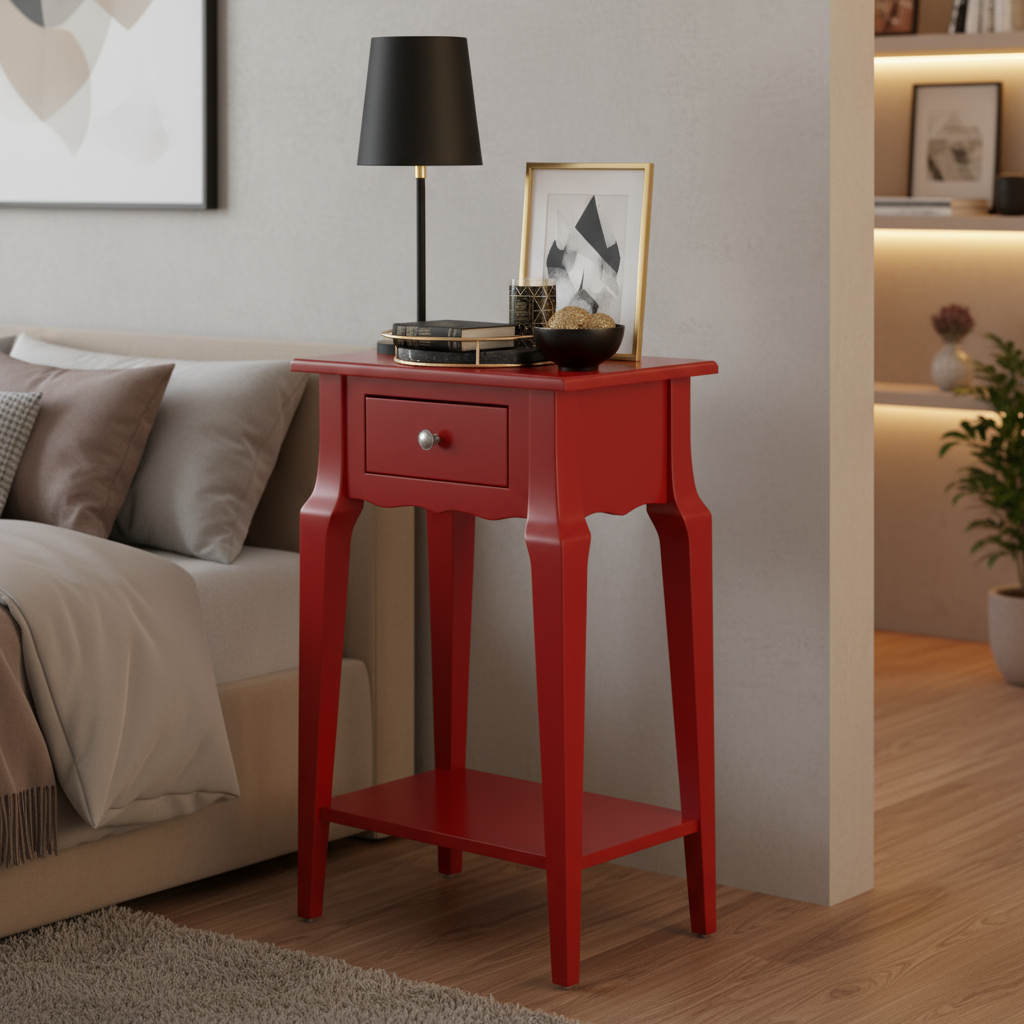 Wooding Mobilya Masif Konik Kırmızı Raflı Komodin