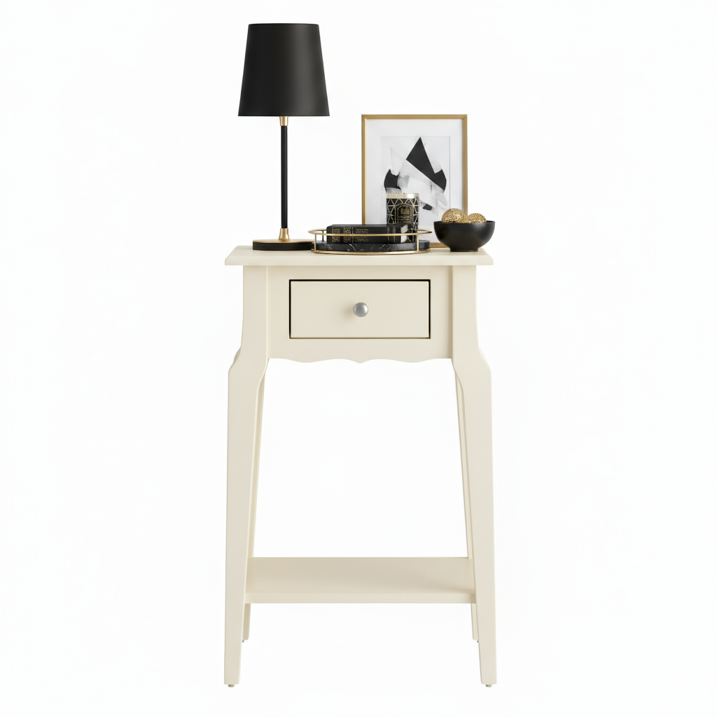 Wooding Mobilya Masif Konik Krem Raflı Komodin
